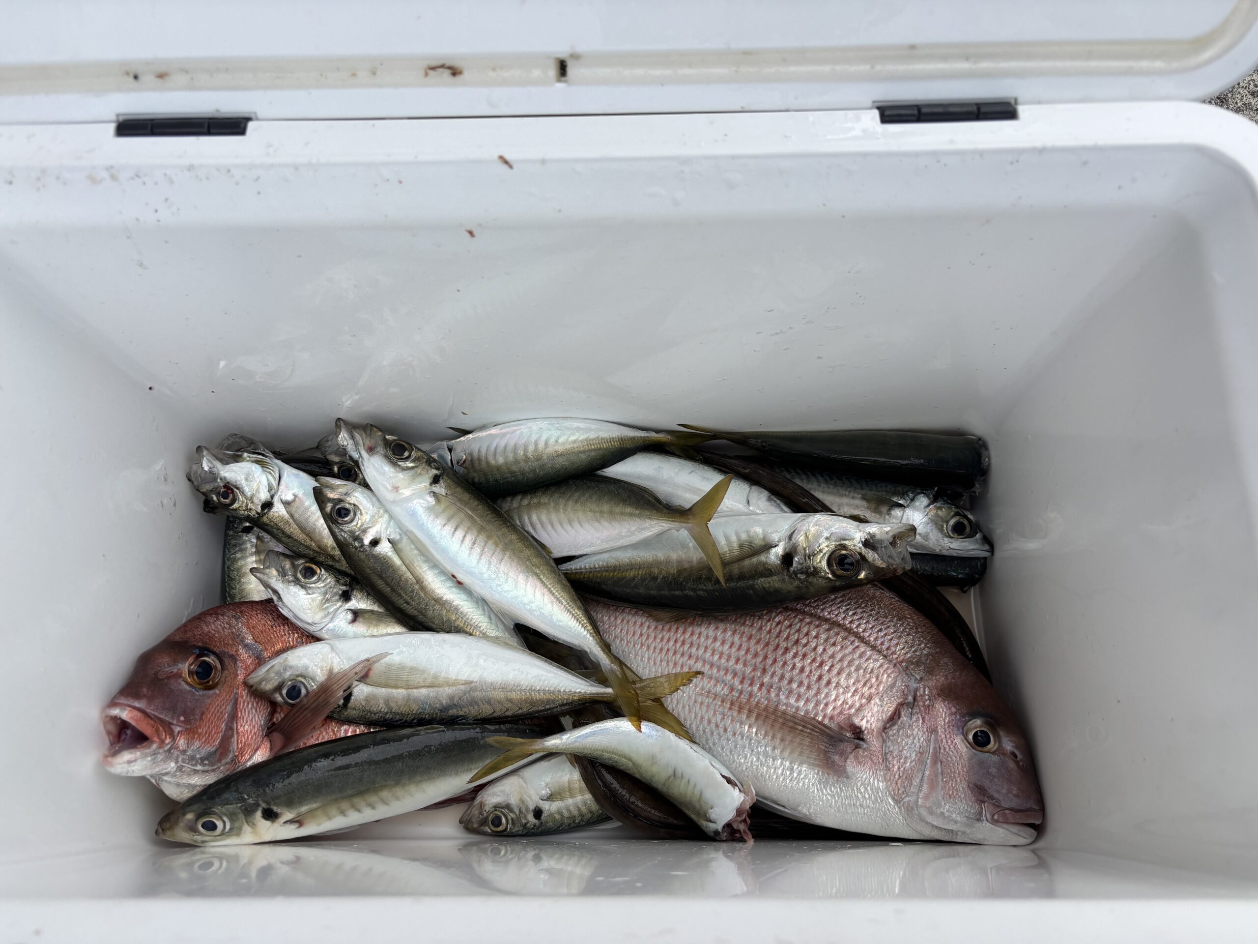 2025.09.28 森山様 コロダイ73センチ 中アジ マダイ 天気 水温℃ 風m 魚種 サイズ センチ 匹数 釣り人 仕掛け 天秤ズボ エサ オキアミ 前の記事へ 一覧へ戻る 次の記事へ 最新の釣果情報 2025.10.01 大アジ・グレ狙いの半夜カセ(12~18時)はじめます!🌌🛥 2025.09.28 最新釣果です。コロダイ気配有。 2025.09.26 出船時間とご留意点 2025.09.26 最新釣果です。中アジ多数! マダイ 釣果一覧へ戻る